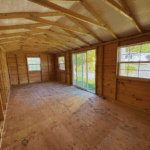 Revêtement : Planche de pin embouvetée Teint
